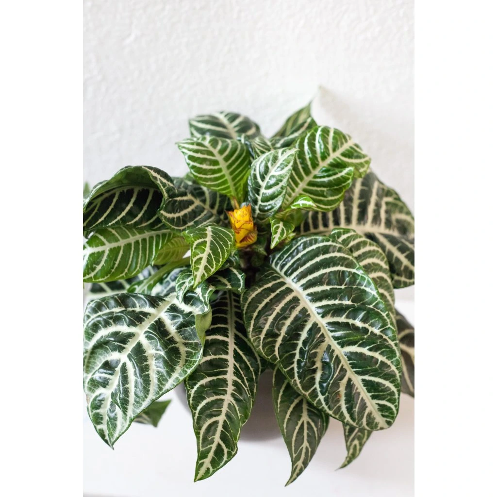 Vďaka jej kontrastným, dvojfarebným listom sa táto rastlinka nazýva aj "Zebra plant". Listy sú tmavozelenej farby s výraznou bielou žilnatinou. Častokrát bývaju akoby pokrčené, čo u niekoho môže vyvolať obavy, či je s rastlinkou všetko v poriadku. Uisťujeme ťa, že áno. Táto izbovka miluje 50-60% vzdušnú vlhkosť. Je preto dobré mať ju v blízkosti zvlhčovača vzduchu. Pri suchom vzduchu môžu rastlinke začať hnednúť okraje listov. Pokiaľ sa o Aphelandru dobre staráš a poskytuješ jej všetko, čo potrebuje, odvďačí sa ti krásnymi, žltými kvetmi.