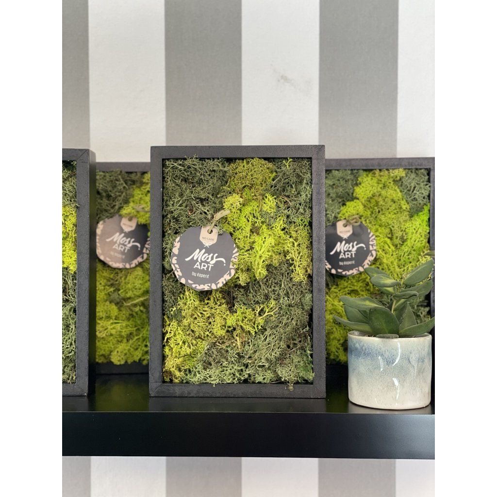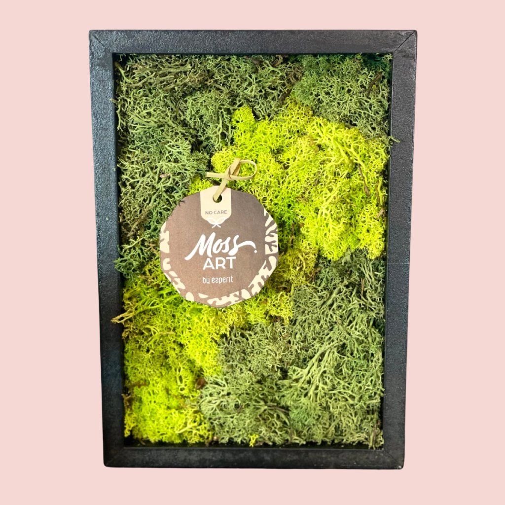 Machový obraz v tvare obdĺžnika s priemerom 27 cm prináša do interiéru kúsok prírody bez akýchkoľvek starostí. Tento elegantný doplnok tvorí stabilizovaný mach – 100 % prírodný a ekologicky spracovaný tak, aby si zachoval svoj svieži vzhľad dlhé roky bez potreby polievania, strihania či špeciálnej starostlivosti. Stabilizovaný mach prechádza šetrným procesom konzervácie, pri ktorom sa jeho prirodzená vlhkosť nahrádza netoxickým, ekologickým roztokom. Výsledkom je trvalo krásny, mäkký a žiarivo zelený povrch, ktorý nevädne ani nežltne.