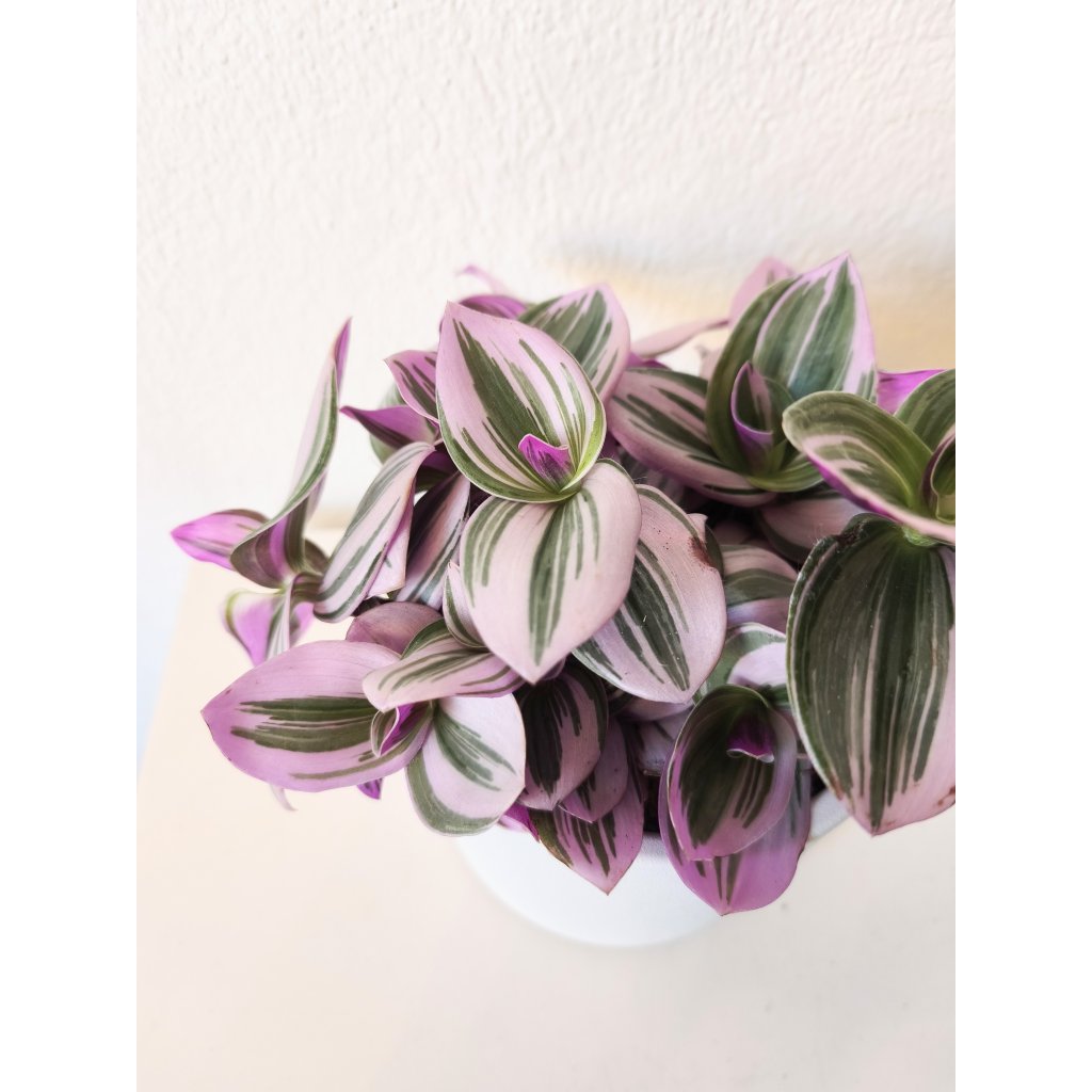 Kedysi bola táto Tradescantia bežnou súčasťou takmer všetkých domovov, a teraz sa znova obnovuje jej zašlá sláva. Dvojfarebné, bielo-zelené listy sú na spodnej strane výrazne fialové. Tak výrazne, že fialová presvitá cez bielu farbu na povrchu listov a ty máš pocit, že to nie je biela, ale svetlofialová. Táto rastlinka je naozaj očarujúca. Čím viac svetla jej dopraješ, tým výraznejšie sfarbenie bude mať.
